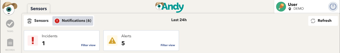 The notifications counter has also been updated to show the total number of alerts and incidents, rather than the number of affected sensors.