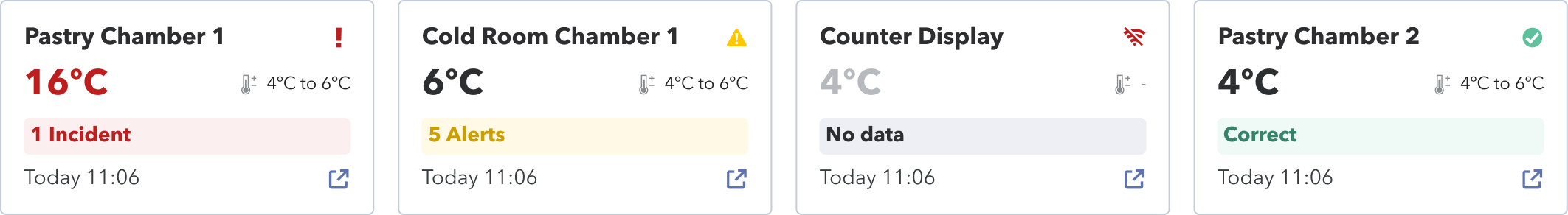 Each sensor is now displayed as an individual card, showing its status through color coding: